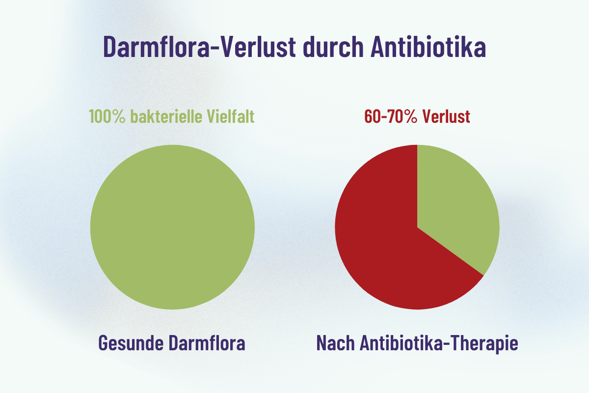 Nach einer Antibiotika-Therapie verliert die Darmflora bis zu 60-70% ihrer natürlichen Vielfalt [1]. Das ist keine vorübergehende Störung – das ist ein medizinischer Notfall für Ihren Körper.